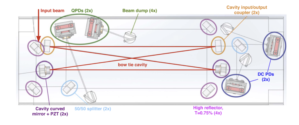 Layout of Advanced LIGO OMC. All the optical components are bonded on a single breadboard made of fused Silica [8].